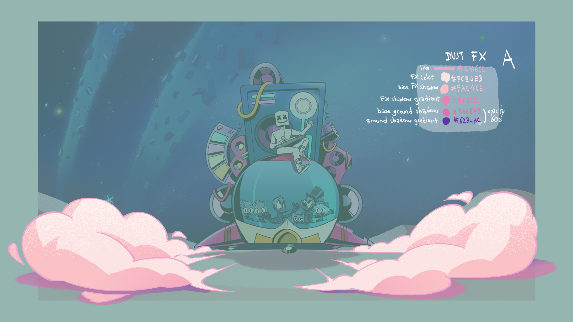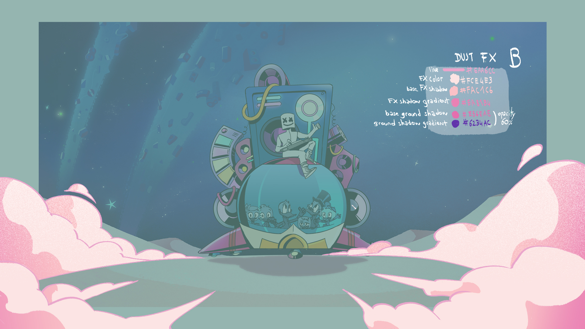 Working at GoldenWolf, I had the opportunity to co-direct this collaboration piece between musician Marshmello and the DuckTales license. I wrote the script, roughed out the board and partly directed the animation.